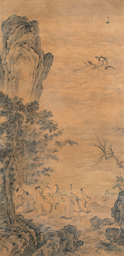 蒋嵩,明代画家。号三松。金陵(今南京)人。生活在明代中叶,卒于嘉靖初。与宗臣、蒋贵、薛仁、宗登春等,均为江夏派名家,画法近吴伟、张路,多用方笔,水墨厚重,善于用枯笔焦墨,作画豪放不羁,行笔粗莽,独具风貌。亦工人物。 代表作品有《渔舟读书图》轴,藏北京故宫博物院。