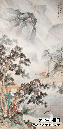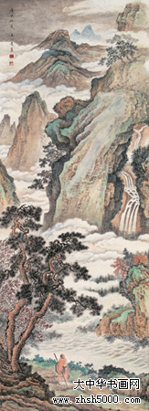 王心竟(1909-1954),又名心镜,字锡照,山东省烟台市人,居于北京。曾为中国美术家协会会员,自幼习画,少年时曾入金城门下,十几岁入“湖社”学画,师承赵梦朱、钟质夫,专攻山水画。1930年就读于北京辅仁大学美术系,后又入吴镜汀门下,师唐寅诸法,追两宋画风。“湖社”画会是北京最早的美术界学术组织,1926年冬成立,为纪念其前身——“中国画学研究会”的早期创办人金北楼先生,以金北楼旧号“藕湖”取名“湖社画会”,其弟子均以“湖”字为号。著名画家叶恭绰、陈半丁、王雪涛等均为湖社会员,张学良、齐白石、梅兰芳等均为湖社好友。“湖社”主要活动于北京、天津等地,后来又成立了“辽宁湖社书画研究会”,“湖社”画家中的赵梦朱、钟质夫、晏少翔、季观之、王心竟等人来到辽宁沈阳,在东北美专(1958年后改为鲁迅美术学院)任教。王心竟即于 1953年到东北美专任讲师,为东北地区的中国画教学和人才培养作出了极大的贡献,其山水画风整整影响了一代人。 代表作品有《山村晨歌》、《风雨情》等。